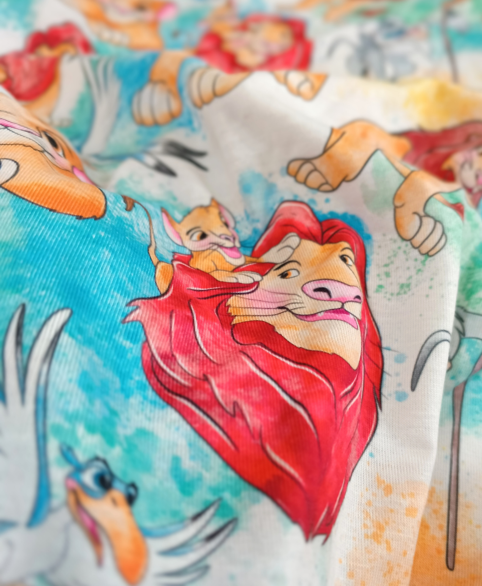 Aslan Kral Kumaş serisinin en asil ve masalsı hali Pix Kumaş’ta! Simba, Mufasa ve Zazu’yu Savannah’ın sıcak renkleriyle buluşturan bu özel koleksiyon, %83 pamuk yoğunluklu premium süprem dokusuyla her yaşa hitap ediyor. Kristal netliğindeki dijital baskı teknolojisi, karakterlerin güçlü ifadelerini ve suluboya efektli canlı renkleri kumaşın ipeksi yüzeyine kusursuzca işliyor.