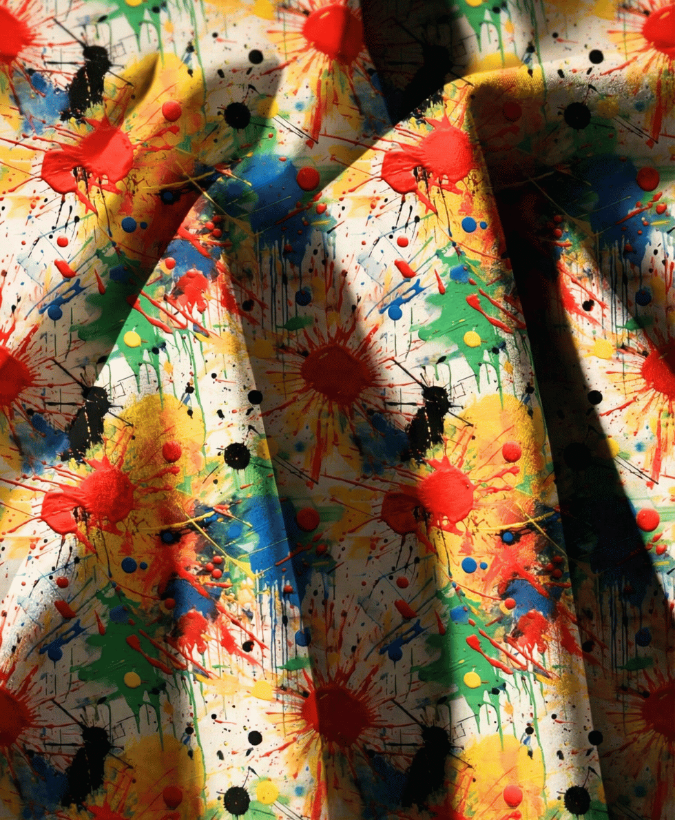 Renkli Boya Sıçratma Desenli Kumaş serisiyle stilinize sanatsal bir dokunuş katın! Modern splash (sıçratma) efektlerini canlı renk paletiyle buluşturan bu özel koleksiyon, %83 pamuk yoğunluklu premium süprem dokusuyla her tarza hitap ediyor. Kristal netliğindeki dijital baskı teknolojisi, dinamik renk geçişlerini kumaşın ipeksi yüzeyine kusursuzca işliyor.