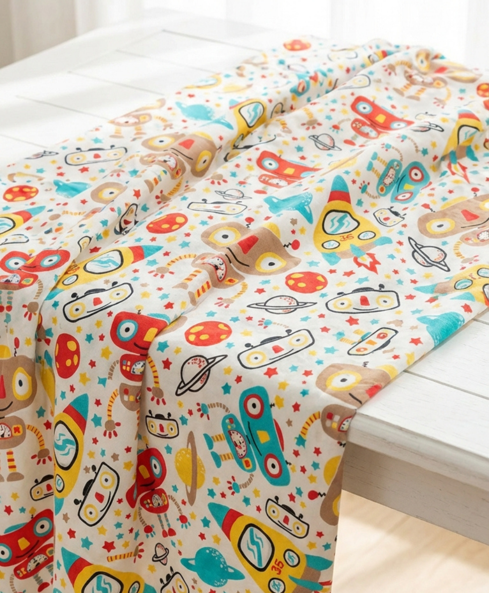 Uzay ve Robot Karakterli Dijital Baskılı Süprem Kumaş